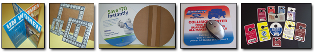 At Classic Laminations we have a variety of dies on hand to quickly turn around your project. These include several sizes and styles of easels, pocket folders, door hangers, counter mats, mouse pads and promotional magnets.