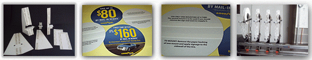 Applications include shelf-marking, counter cards, and adhering printed sheets to various objects. We can even use two-sided tape to attach a spring to make an eye-catching 3D “wiggle” display.
